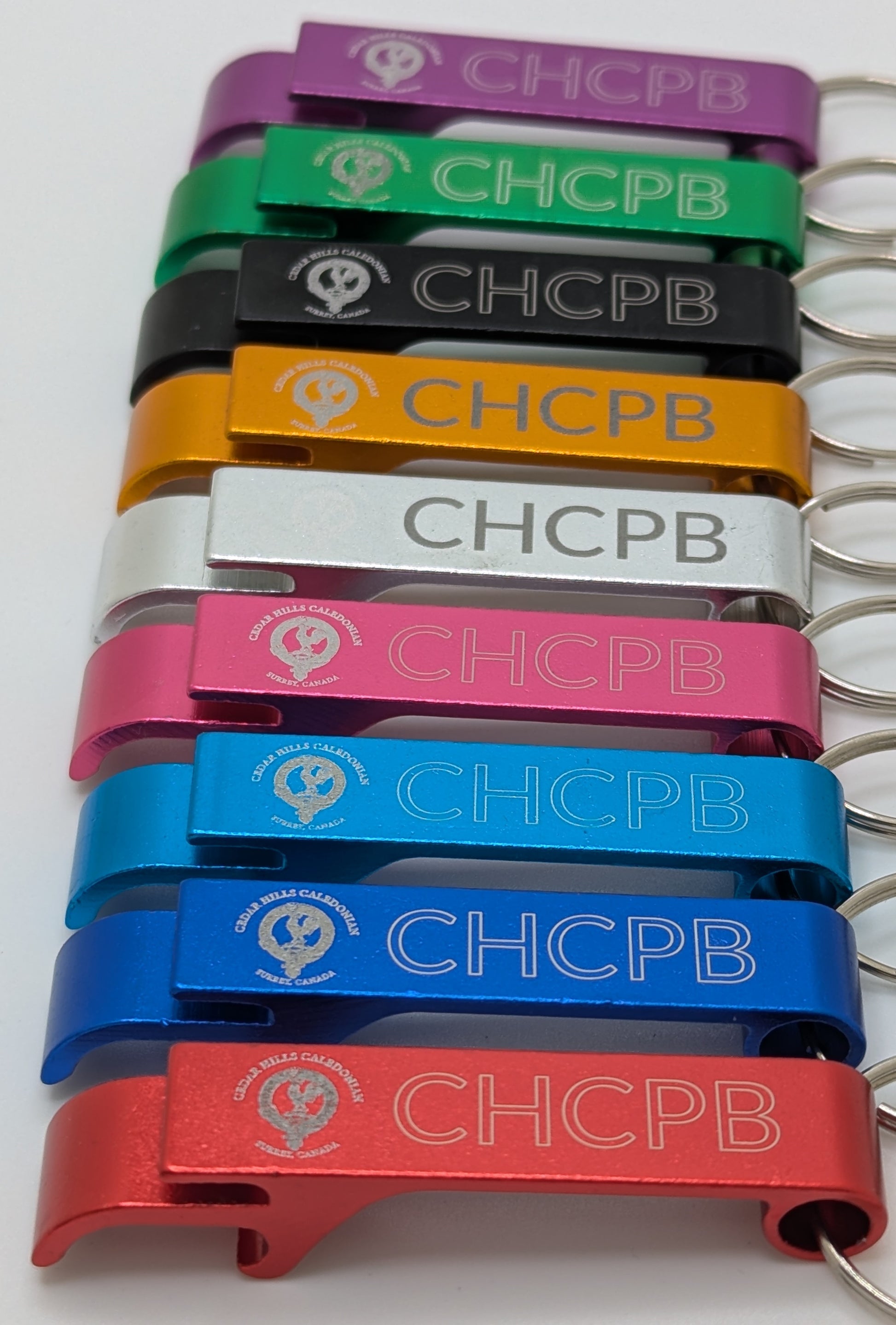 It not only opens bottles but can be used to open cans too. Every dollar raised goes right back to the Cedar Hills Caledonian Pipe Band. Available in 9 colors that are laser engraved with the bands contact details.