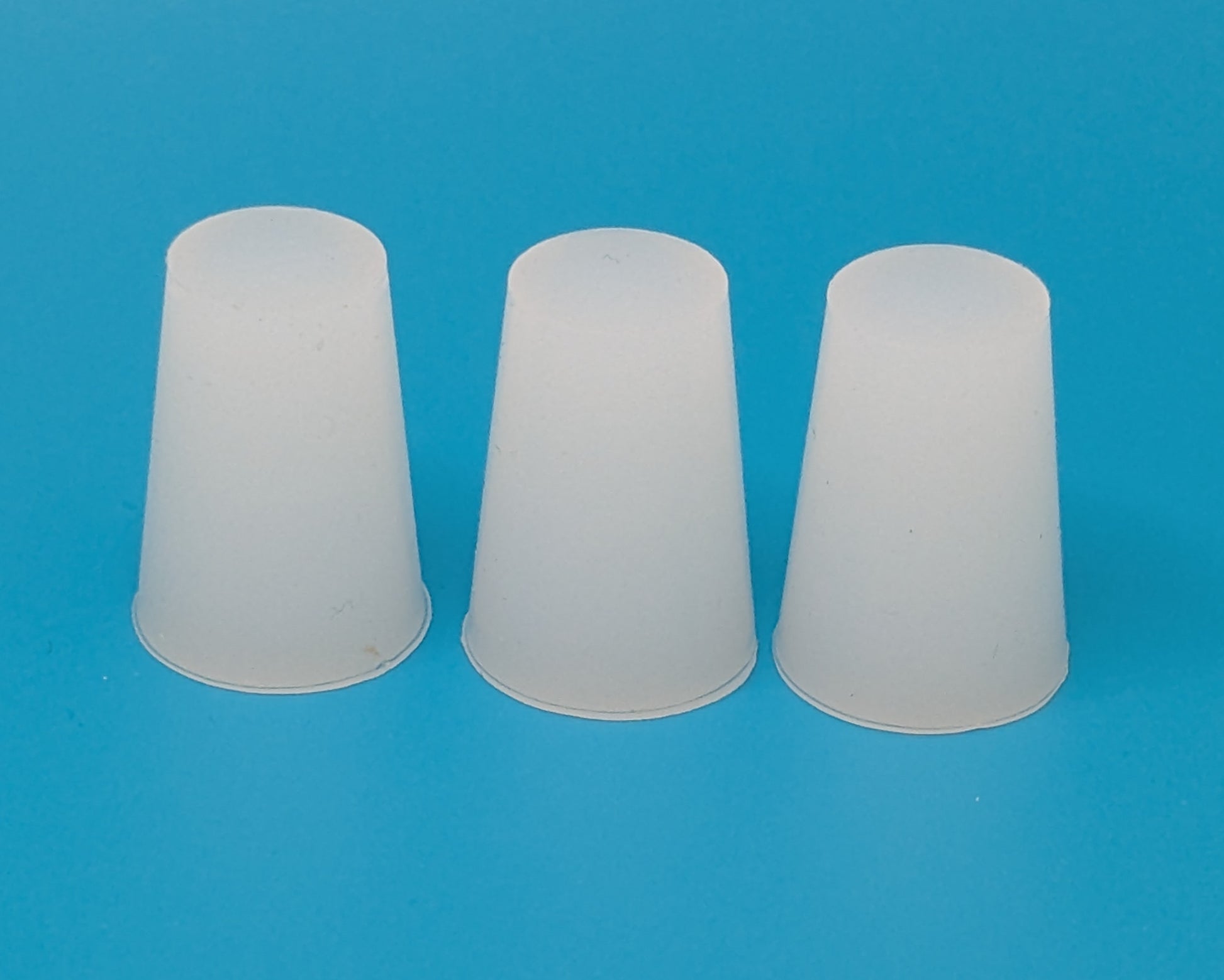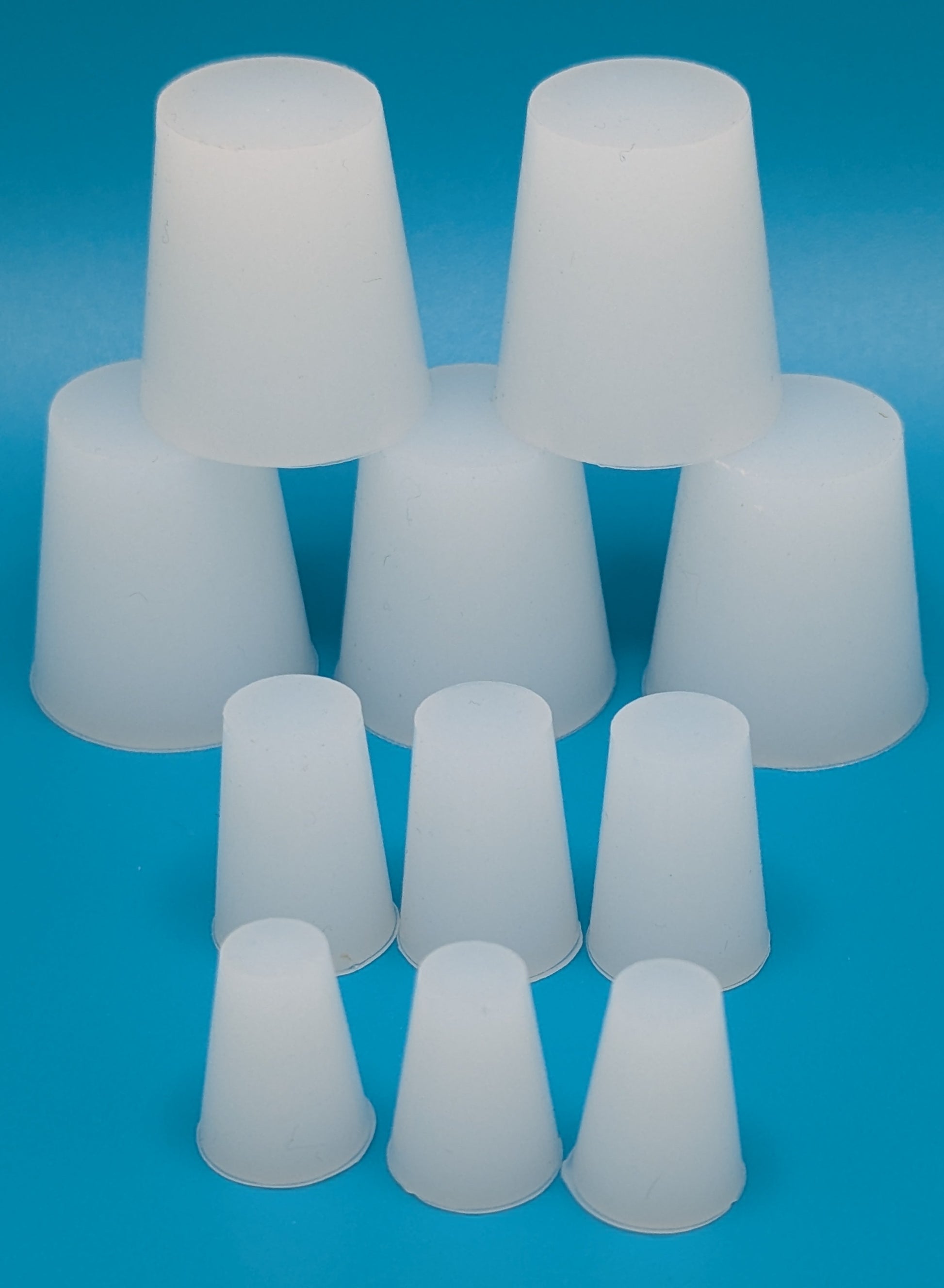 Made from food safe silicone rubber you have your choice of 3 different sizes of corks in white, making them easier to find in your pipe case.